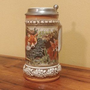 Vintage Gerz German Beer Stein Tankard Mother Mama Fox Baby Fox Kits RARE