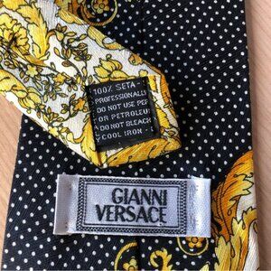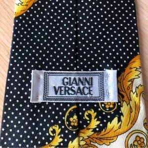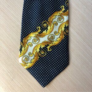 Vintage Gianni Versace 100% Silk Baroque Filigree Navy & Gold Tie
