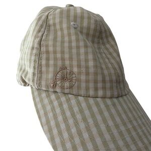 Vintage Gingham Seersucker Cap | Beige Green Checkered Bicycle Embroidery Hat