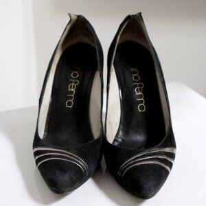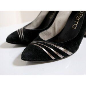 Vintage Gino Ferra Art Deco Black Suede Pumps - Women's Size 5