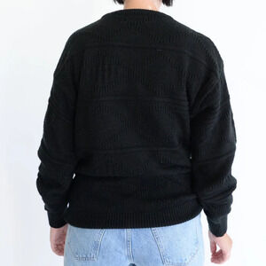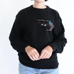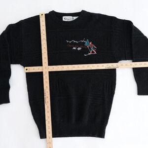 Vintage Gioni Designs Black Fine Knit 3D Pattern Embroidered Skier Sweater M