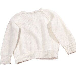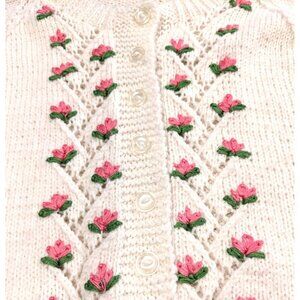 Vintage Girls Cardigan Sweater Handmade White Pink Embroidered Flowers Buttons