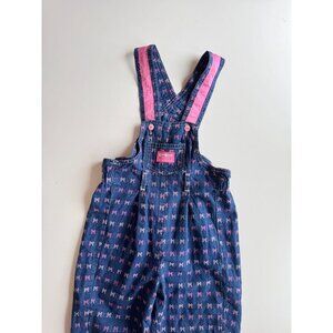 Vintage Girls' OSHKOSH B'GOSH Pink Bow Embroidered Blue Denim Overalls, Size 6