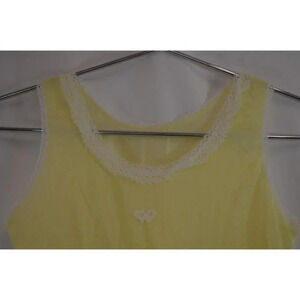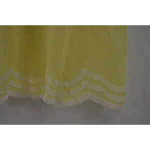 Vintage nightgown, halter or slip dress for a young girl. Pretty light yellow color with off white / cream lace details including a pretty bow on the chest. Tag reads Palmers and is marked as a size 3. The style looks more like it was intended for adults but it is very small and came with a lot of vintage girl's clothing. Strap shoulders with about a 6" sleeve opening. The dress is 13" across under the bust where the seam is, so about 26" around. Total length 24".