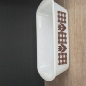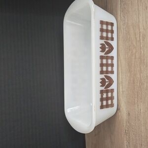 Vintage Glasbake 1.5qt Loaf Pan - Milk Glass with Gingham Tulip