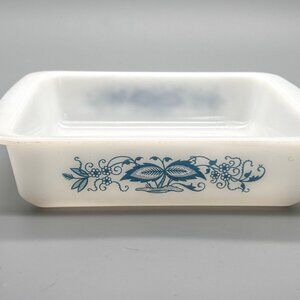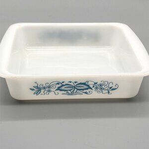 Vintage Glasbake Blue Floral Milk Glass Baking Dish J235 Square Eight Inch