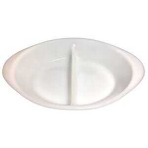 Vintage Glasbake Divided Casserole Serving Dish White Green Crazy Daisy