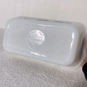 Vintage Glasbake Milk Glass Brown Flower Pattern Loaf Pan