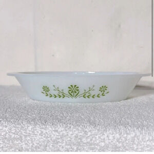 Vintage Glasbake Milk Glass Green Daisy Flower Split Oval Casserole Dish