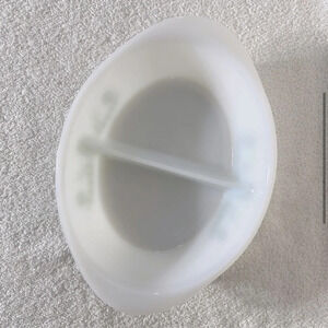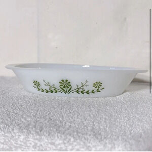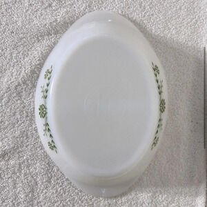 Vintage Glasbake Milk Glass Green Daisy Flower Split Oval Casserole Dish
