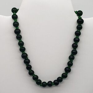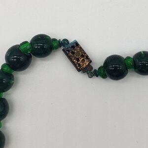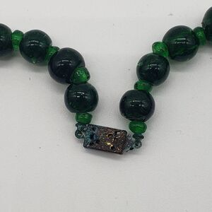 Vintage Glass Beaded Dark Green Choker Necklace and Multicoloured Charm Bracelet