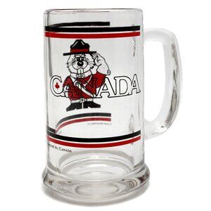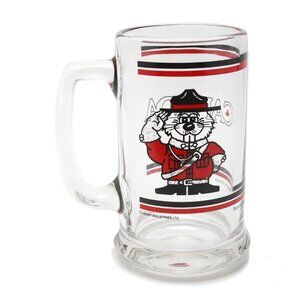 Vintage Glass Beaver Mountie Beer Mug Canada Drinking Cup Retro Canadiana