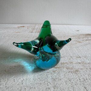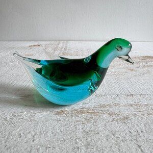 Vintage Glass Bird Paperweight Figurines -Blue Green Glass Bird Glass Decor