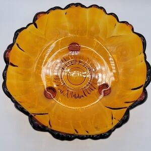 Vintage Glass Bowl Amber Sunflower Footed #614
