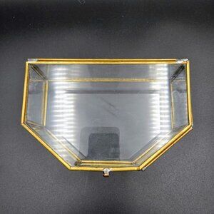 Vintage Glass Brass Curio Display Case Jewelry Trinkets MCM Read