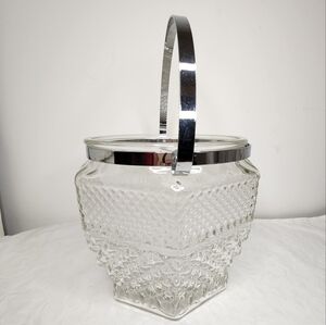 Diamond Pattern Blown Glass Champagne Ice Bucket with Stainless Steel handle, Wexford by Anchor Hocking.