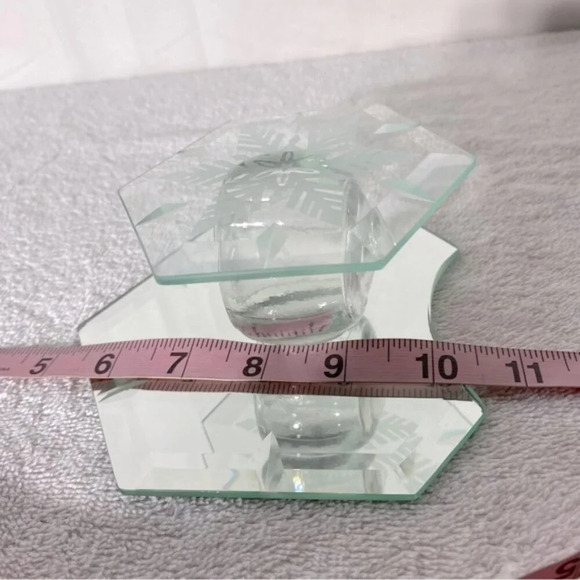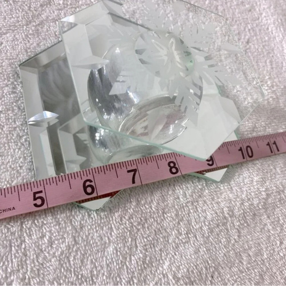 Vintage Glass Mirror Candle Holder Snowflake Winter Decor