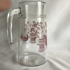 Vintage Glass Pitcher Made in France Pink Graphics of Bird and Basket