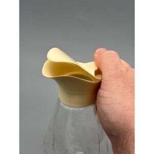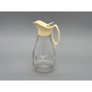 Vintage Glass Pitcher With Beige Plastic Pour Lid | Clear Starburst Base Bottle