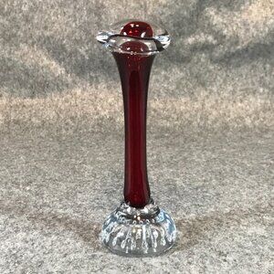 Vintage Glass Red Single Bud Vase Controlled Bubble Base