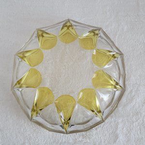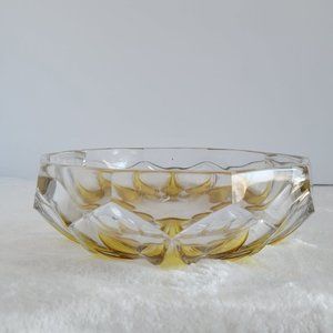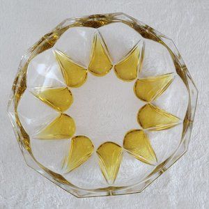 Stunning vintage glass bowl with amazing vibrant yellow glass Sun design on bottom.