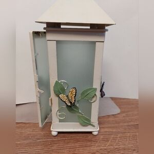 Vintage Glass and Metal 3D Butterfly Tealight Lantern. Pretty for any patio table. Great Mother's Day gift. Glass Frosted windows. Decorated with butterflies. Door lock on hinge. Handmade. Pre-owned.