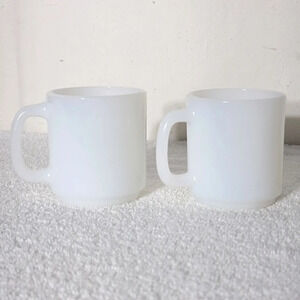 Vintage Glassbake Heat Resistant Milk Glass Bob Miller Trucking LTD. Mugs x2