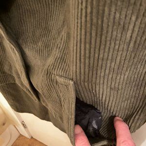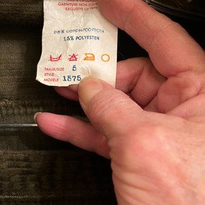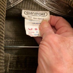vintage Glensport size 5 army green matching jacket, skirt, pants. Jacket has 3 button front, pockets, gathered bottom seam in back. Skirt has zipper in back, belt loops, slit in back, 31" long. Pants have front and back pockets, front zipper, belt loops, inside seam 27" long. Jacket and skirt like new, pants need to be dyed to match colour. 85% cotton