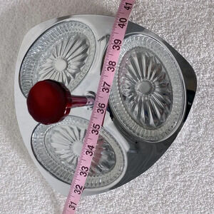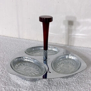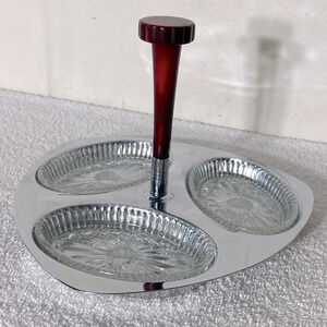 Vintage Glo Hill Gourmates Chrome Serving Tray W Bakelite Handle & Glass Dishes
