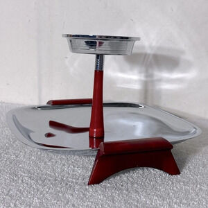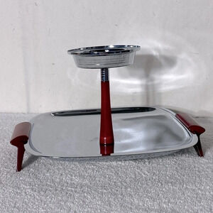 Vintage Glo Hill Gourmates Chrome Serving Tray W Cherry Red Bakelite Accents