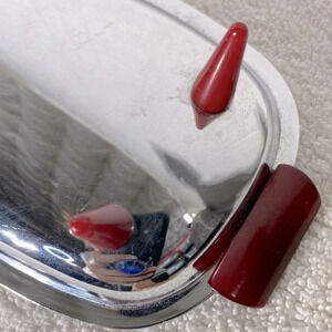 Great vintage condition. Signs of wear and use shown In pics. Measurements in pics. Please look at all pics and zoom in for a closer view. Vintage Glo Hill Gourmates Chrome Serving Tray With Bakelite Handles US