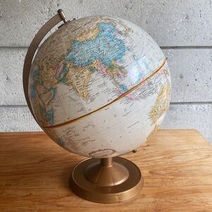 Old globe I bought at a vintage store years ago. I actually used it during COVID for teaching the kids longitude and latitude. The shopkeeper explained to me that the previous owner had highlighted true magnetic North in red because he used this globe for teaching boating courses and needed to show his students the difference between magnetic NP and the North Pole we all know. Please note this old globe still depicts the USSR. Great decor vintage piece.