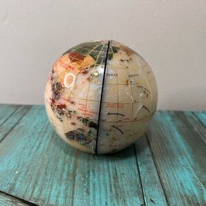 On one side there are two large cracks. The other side there is only one crack on one half of globe Measurements in photos