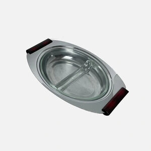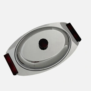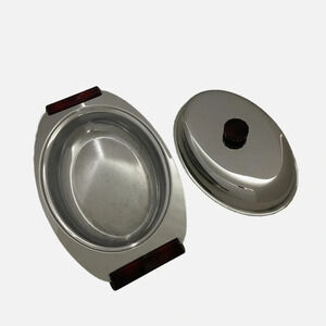 Vintage Mid-Century Glo-hill Gourmates oval chrome covered vegetable serving dish with lid.
