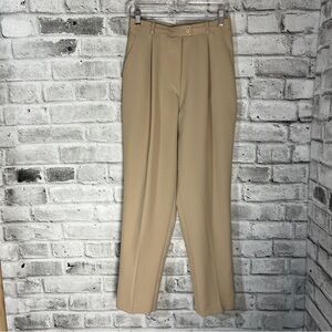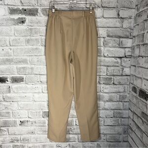 Vintage 80s 90s Gloria Vanderbilt beige high waisted pleated straight tapered leg lightweight career trousers. Great used vintage condition. Belt loops, elastic backside inserts for comfort and side pockets. The perfect classic earthy neutral toned, normcore, coastal gramma work office pants.