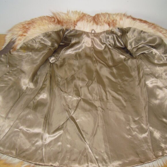 Vintage Goat Genuine Real Fur Coat Jacket Long Hair Rust/White Size Small
