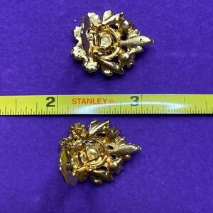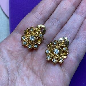 💛 Vintage Gold Crystal Floral Clip-On Earrings