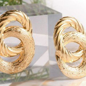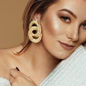 Vintage Gold Geometry Crossed Metal Loops Drop Earrings