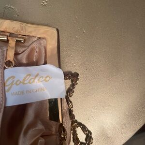 Beautiful Goldco Vintage Purse Silky Gold Material With Gold Chain Purse Opening 6 “ Chain Length 21 “