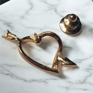 Vintage elegant gold pin with a heart and arrow design. Perfect for adding a touch of romance to any outfit.