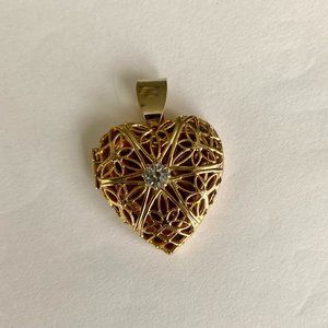 Vintage heart locket with rhinestone detail. Unsure if this is gold-plated or gold-tone, but very feminine and pretty.