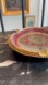 Add a touch of vintage elegance to your home decor with this beautiful and unique ashtray. This piece features a striking combination of maroon enamel and a delicate gold-tone lace pattern, creating a sophisticated and timeless aesthetic. The gold lace motif in the center is intricate and detailed, giving it a high-end, classic feel. The outer rim is adorned with a decorative scalloped edge, also in gold-tone metal, adding to its charm.