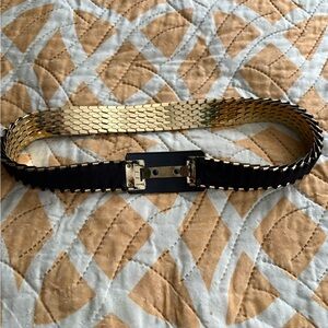 Vintage Gold Metal Scale Elastic Belt with Rectangle Buckle
