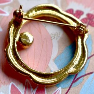 ๐๐ Vintage Gold Plated CircleTwisted Wreath Brooch Red Rhinestone 1.2"
