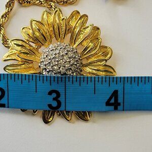 Vintage Gold Plated Sunflower Pendant Necklace & Brooch