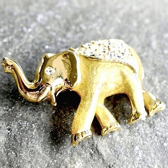 Vintage Gold Rhineston Embellished Elephant Brooch