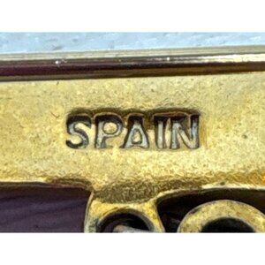This brooch features detailed craftsmanship with scissors and a thimble charm, showcasing vintage Spanish artistry. A unique piece for collectors or enthusiasts.