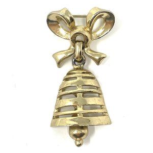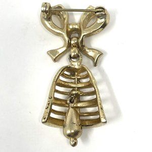 Vintage Gold Tone Bow with Moving Bell and Clapper Christmas Articulated Brooch