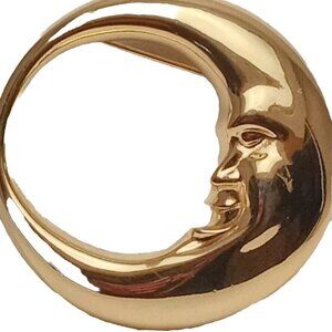 Vintage Gold Tone Crescent Moon Man Brooch Chunky Pin Waxing Eclipse Face Grin