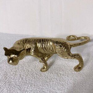 Vintage Gold Tone Jaguar Tiger Statue Figure Sculpture Cat Kitty Decor Art